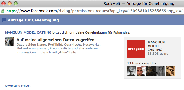Ähnlich wie beim „Gefällt mir“ Button verhält es sich bei Facebook Applikationen. Aus diesem Grund hat Facebook auch mit Tests begonnen, die beim Berechtigungsdialog Freunde anzeigen, die ebenfalls die Applikation verwenden. Gleiches Prinzip: Sieht ein Nutzer das mehrere Freunde ebenfalls die App verwenden bzw. ein Social Game spielen, sinkt die Einstiegshürde und die App wird eher zugelassen.