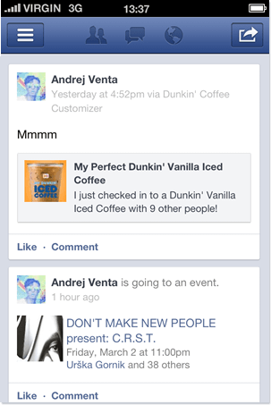 In Zusammenarbeit mit dem Facebook PMD Celtra wurden vier Pilotprojekte gestartet und alle erwecken auf den ersten Blick einen guten Eindruck. Dunkin Donuts hat einen Post mit einem interaktiven Video kombiniert, indem Nutzer ihren Lieblingskaffee erstellen und anschließend auf Facebook teilen können.