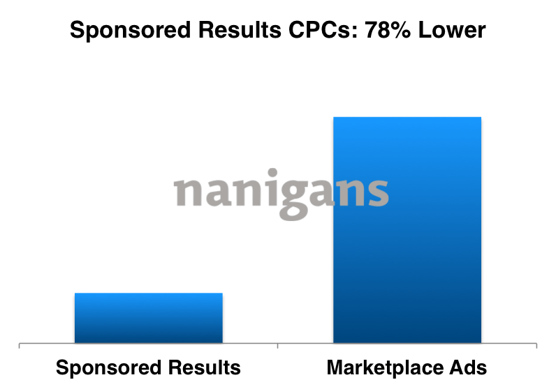 Hinzu kommt, dass Sponsored Results nicht nur höhere Klickraten erzielen, sondern auch wesentlich niedrigere Klickpreise aufweisen.  Der CPC ist laut Nanigans um 78 % niedriger gewesen. Wenn das neue Anzeigenformat weiterhin so gut performed wird sich das aber mit Sicherheit ändern und die CPCs werden sich relativ schnell annähern.
