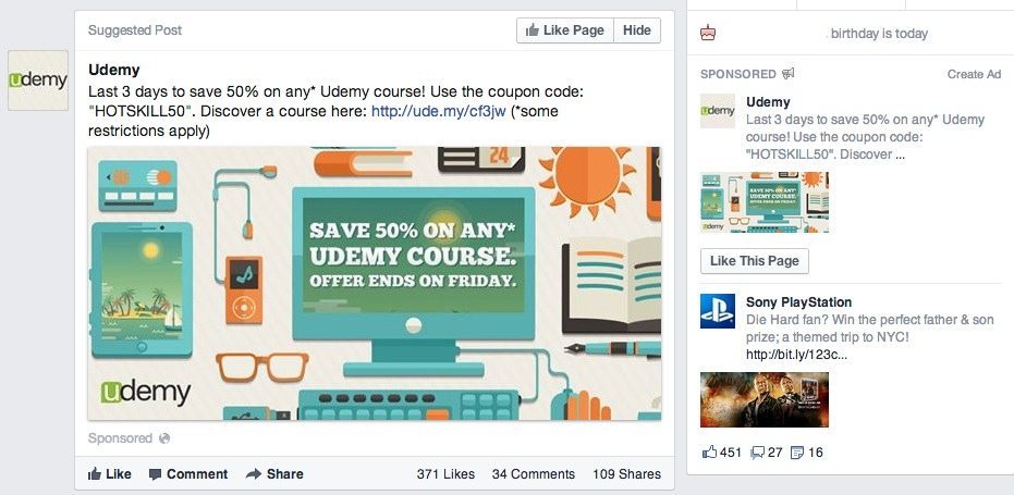 Das liegt meiner Meinung nach einerseits an der Position der Anzeige und zweitens am Aufbau der Anzeige. Nutzer verbringen die meiste Zeit im Newsfeed und sind es gewohnt, auf Fotos, Videos und Links zu klicken. Bei der rechten Spalte sieht es anders aus. Jedem ist sofort klar, dass es sich um Werbung handelt. Hinzu kommt das die Qualität der Anzeigen in der rechten Spalte wesentlich schlechter ist. Retargeting mag ein effektives Mittel sein, aber wenn über Wochen die gleichen Ads angezeigt werden, stößt das bei den Nutzern auf Dauer negativ auf.