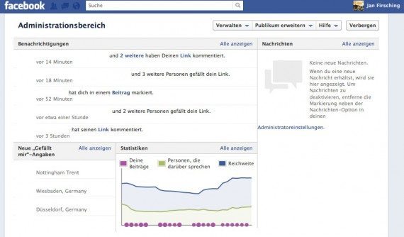 1. Benachrichtigungen: Hier werden sämtliche Interaktionen angezeigt. Kommentare, Gefällt mir Klicks, Tags und Beiträge auf der eigenen Seite. Zuvor musste man über die Benachrichtigung in der rechten Seitenleiste gehen. Jetzt haben Community-Manager alles sofort im Blick und Interaktionen können kaum noch untergehen.
