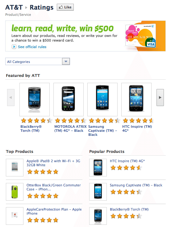 Zum Customer-Support gehört auch immer die Auswertung der Kundenmeinungen bzw. die Frage nach Feedback. AT&T spricht von einem „marketer’s dream“ und genau das ist Facebook auch. So wurde eine eigene App entwickelt, in der Nutzer verschiedene Produkte bewerten und kommentieren können.