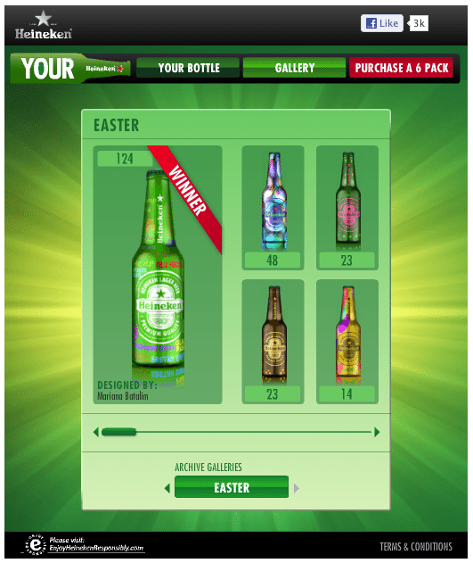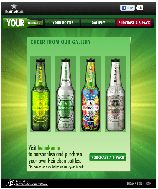 Crowd-Sourcing zählt zu den beliebtesten Kampagnen-Variationen auf Facebook. So auch bei Heineken, die Facebook Nutzern die Möglichkeit gaben, eine eigene Heineken-Bierflasche zu gestalten.