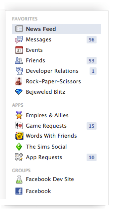 Wer regelmäßig Social Games spielt, wird sicherlich diese in seine Favoriten packen und wer aktiv in Gruppen ist, kann diese nun zu seinen Favoriten hinzufügen. Die Beiden bekannten Bereiche Gruppen und Anwendungen erscheinen direkt unter euren Favoriten und sind auch individuell einstellbar (in abgewandelter Form, war dies ja bereits schon länger möglich).