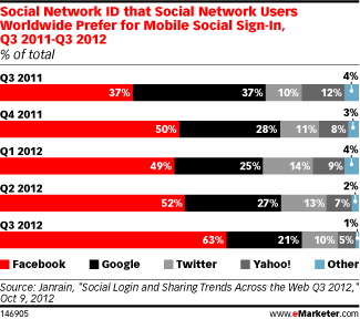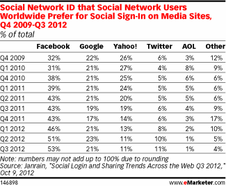 Bildquelle: eMarketerLinkedIn möchte bei den Social Logins auch ein Wort mitreden, taucht in der Studie von Janrain aber noch nicht auf. Gleiches gilt in Deutschland für Xing.